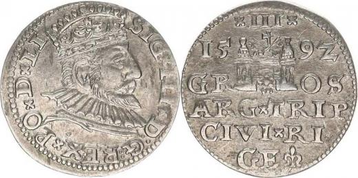 III groš 1592 Riga, Wulf var.: v opise za D: a G: (dvojtečky) jako Zag.396; Iger R.92 2,641 g