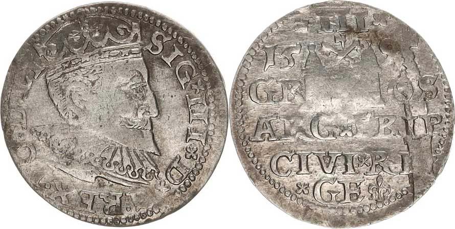 III groš 1595 Riga, Wulf Zag. 396, Kop. II/44.2/1/8; Iger R.95 2,526 g_vada stř. v Rv. (nálitek), mír. exc.