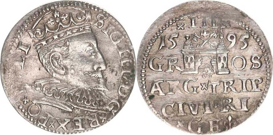 III groš 1595 Riga, Wulf - opis: SIG III+D: G+REX+PO+LI Zag. 396, Kop. II/44.2/1/8; Iger R.95 2,302 g_nep. nedor.