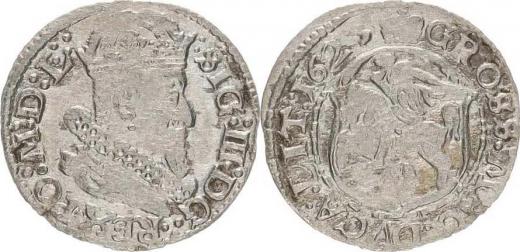 Groš litevský 1625, Wilno-Naruszewicz var. opisu: :SIG: III: DG ( trojtečka) REX. PO: M: D: L čtyři tečky ! / GROSS: MAC: DVCA: LIT : 1625 (bez tečk za dataci) Kopicki 3501; Ivanauskas 3SV142-36 0,723 g_mělká ražba