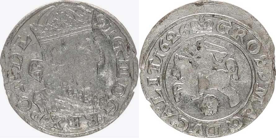 Groš litevský 1626, Wilno-Naruszewicz, konce opisu: L / LIT . Zag. 354; Kopicki 3504(R4), Kamiński-Kurpiewski 2104 0,94 g