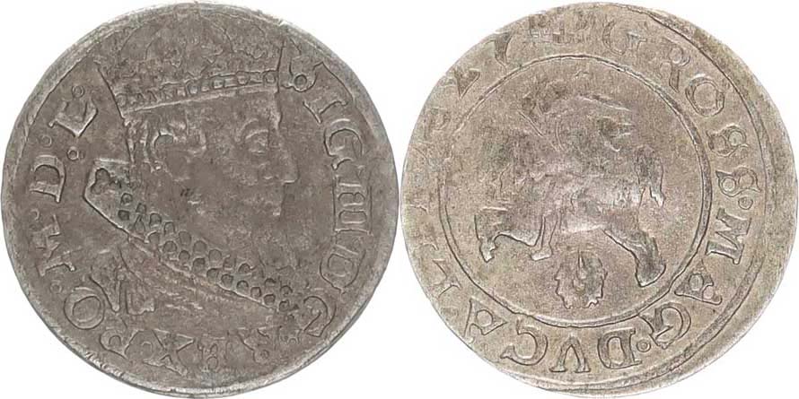 Groš litevský 1627, Wilno-Naruszewicz var.: ve všech opisech jso u rozděl. zn. kroužky (i za GROSS °/ - bez kroužku za datací Ivanauskas 3SV151-42. Kopicki 3505 0,852 g