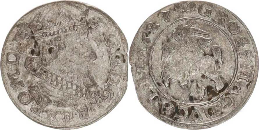 Groš litevský 1627, Wilno-Naruszewicz var.: ve všech opisech jso u rozděl. zn. kroužky (i za GROSS °/ - bez kroužku za datací Ivanauskas 3SV151-42. Kopicki 3505 0,799 g