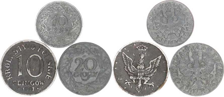 10 Groszy 1923, +20 Groszy 1923 oba Zn 10 Fenigów 1917 FF 3 ks