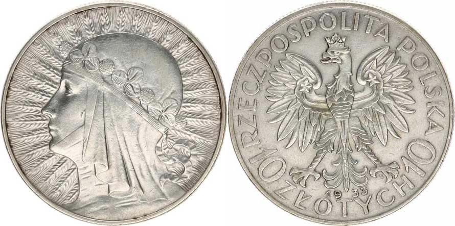10 Zlotych 1933 - Hedvika Y. 22_tém.