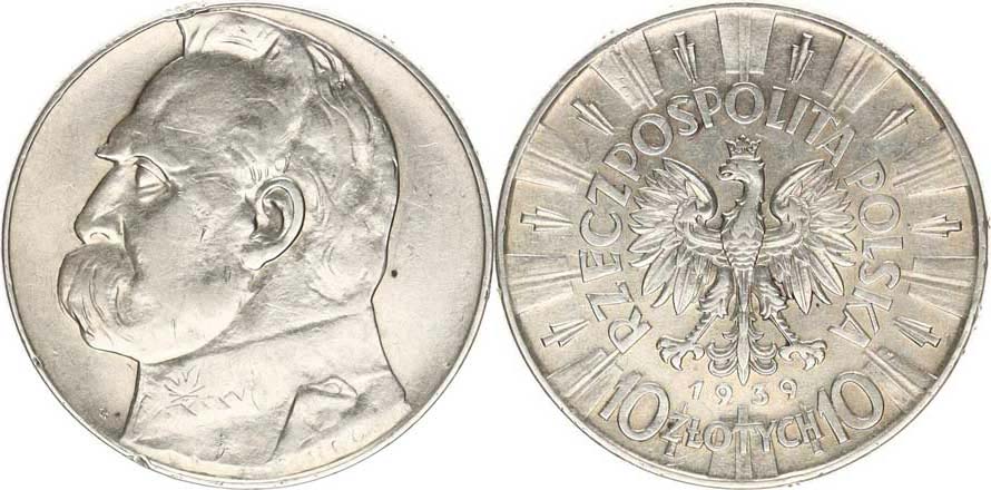 10 Zlotych 1939 - Pilsudski "R" Y. 29_zc. nep. hr.