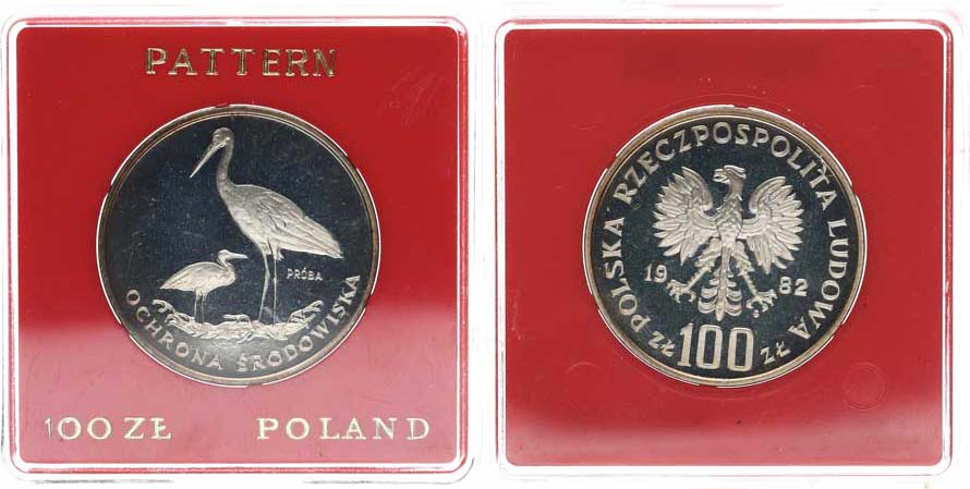 100 Zlotych 1982 - čáp "PRÓBA" KM Pr466 "R" (4 000 ks) orig. etue s červenou výplní