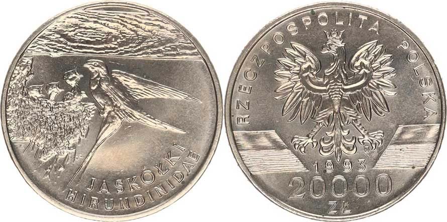 20 000 Zlotych 1993 - Jaskółki Hirundinidae Y. 243