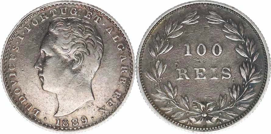 100 Reis 1889 KM 510; Gomes L1 09 Ag 917 2,5 g