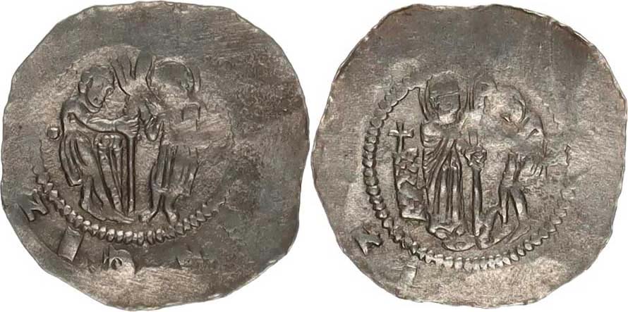 Denár C - 587 var.: se svatozáří, vlevo tečka / za postavou písm eno R "R" 0,758 g_nedor., část. opis
