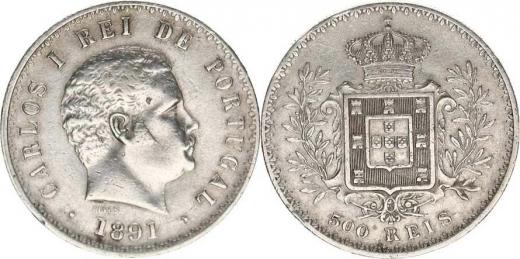 500 Reis 1891 KM 535 Ag 917 12,5 g