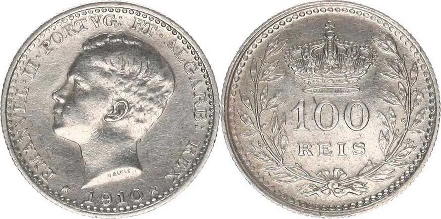 100 Reis 1910 KM 548 Ag 835 2,5 g