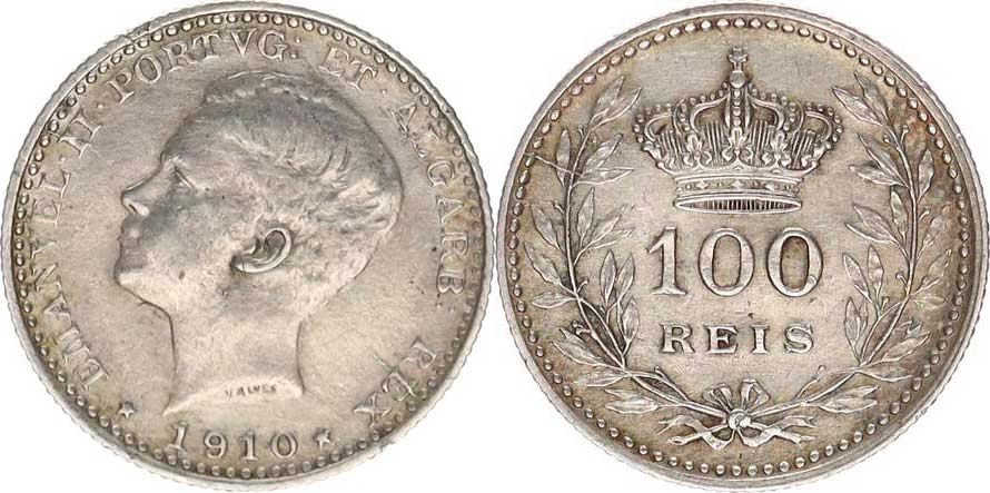 100 Reis 1910 KM 548 Ag 835 2,5 g