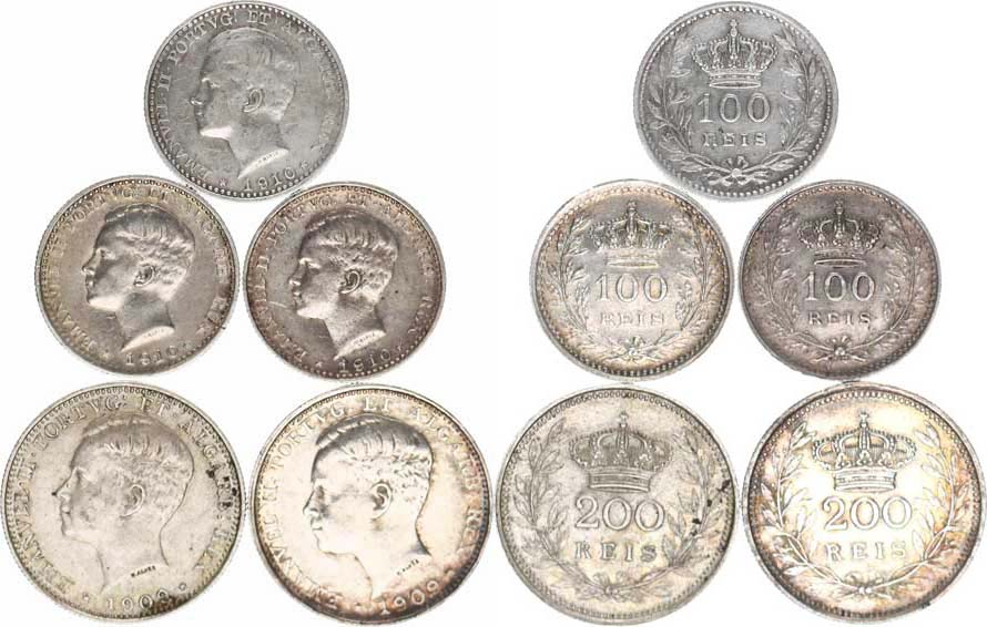 100 Reis 1910 (3x) KM 548 Ag 835 200 Reis 1909 (2x) KM 549 Ag 917 5 ks
