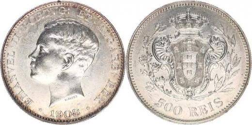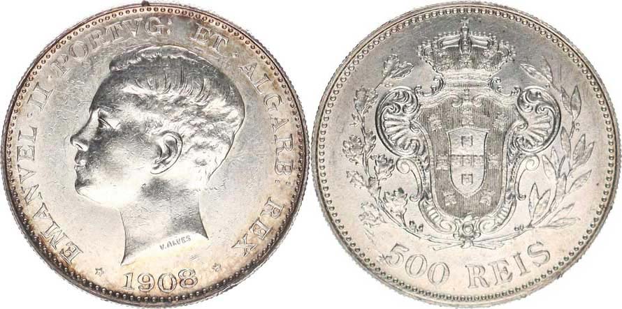 500 Reis 1908 KM 547 Ag 835 12,5 g