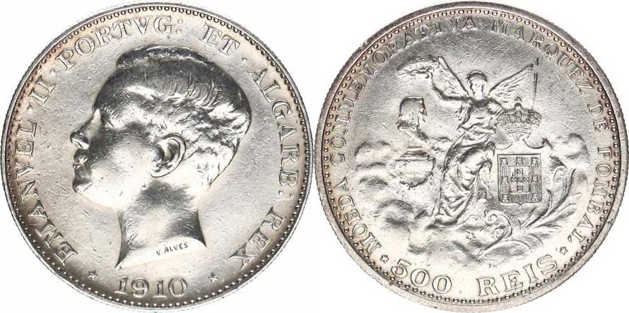 500 Reis 1910 - Markýz de Pombal KM 557 Ag 835 12,5 g