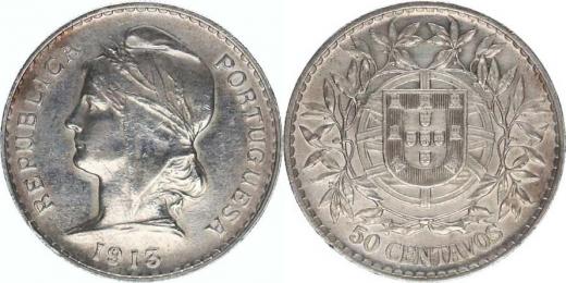 50 Centavos 1913 KM 561 Ag 835 12,5 g