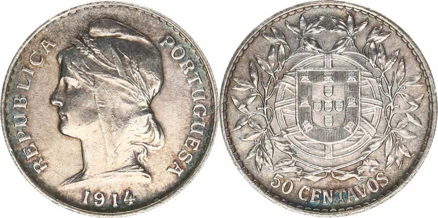 50 Centavos 1914 KM 561 Ag 835 12,5 g