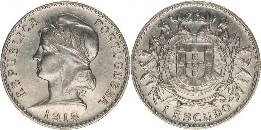 1 Escudo 1915 KM 564 "R" Ag 835 25,06 g