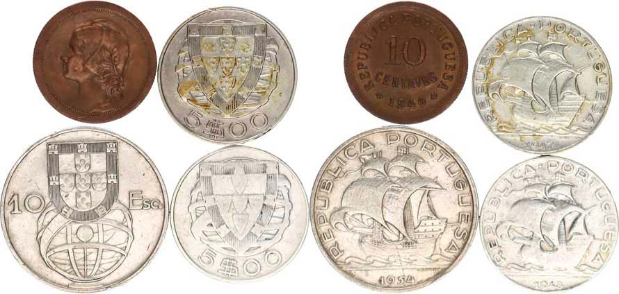10 Escudos 1954; +5 Escudos 1947, 1948; +10 Cenravos 1940 4 ks