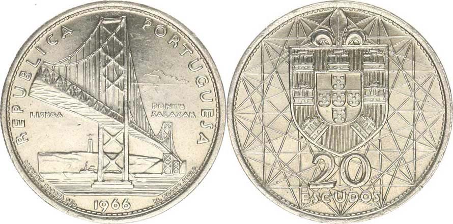 20 Escudos 1966 - Otevření mostu KM 592 Ag 650 10, 00 g