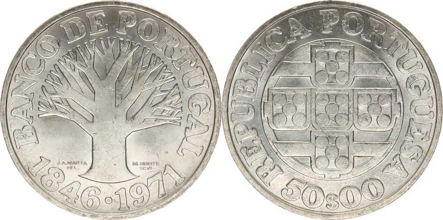 50 Escudos b.l. (1971) - Portugalská banka KM 601 Ag 65 0 18,00 g