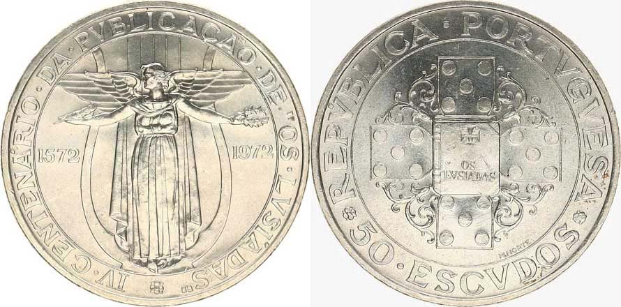 50 Escudos b.l. (1972) - Heroický epos Lusovci KM 602 A g 650 18,00 g