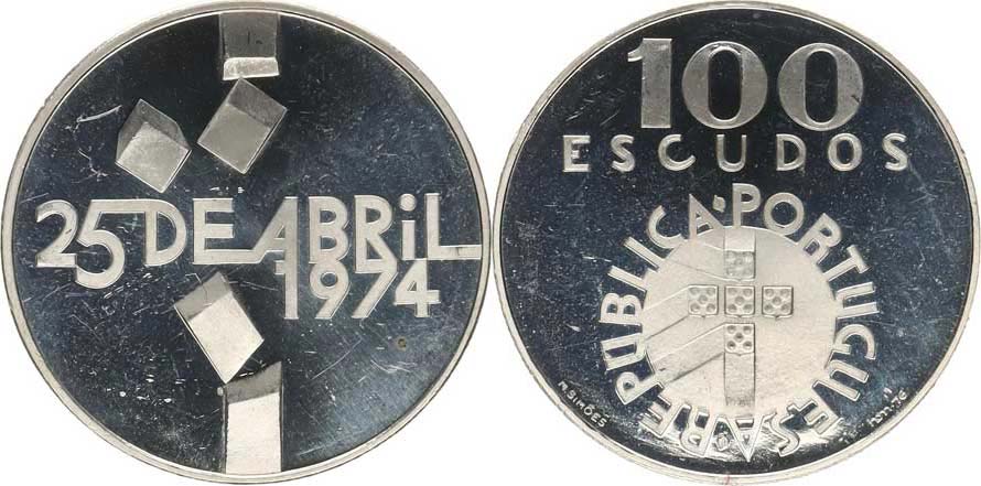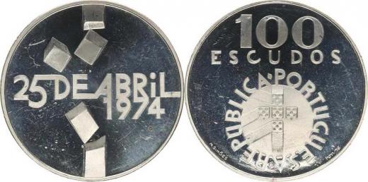 100 Escudos 1976 - Revoluce 25. IV. 1974 KM 603 Ag 6 50 15,04 g