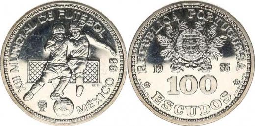 100 Escudos 1986 - MS ve fotbale KM 637a Ag 925 16,45 g