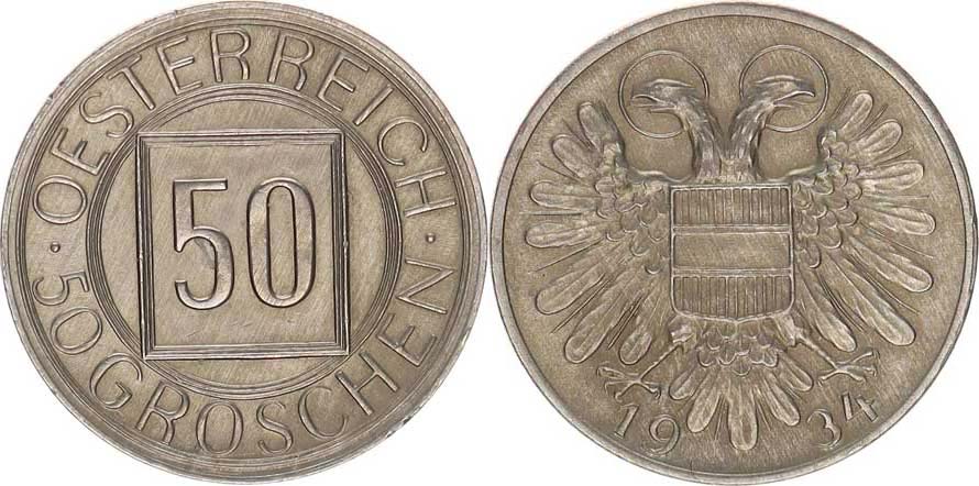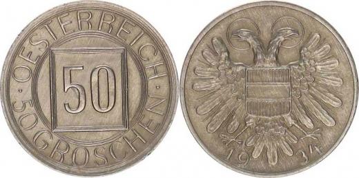 50 Groschen 1934 - "Nachtschilling" KM 2850 "R"
