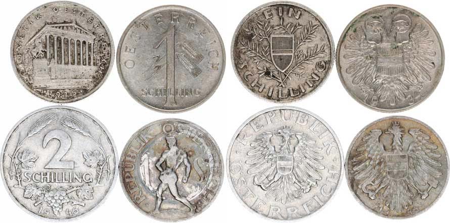 1 Schilling 1925, 1934, 1946; +2 Schilling 1946 4 ks