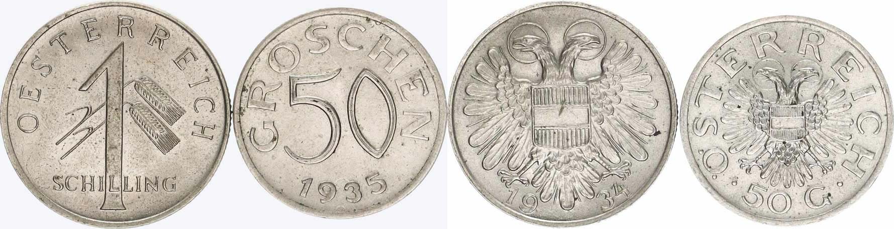 1 Schilling 1934; +50 Groschen 1935 2 ks