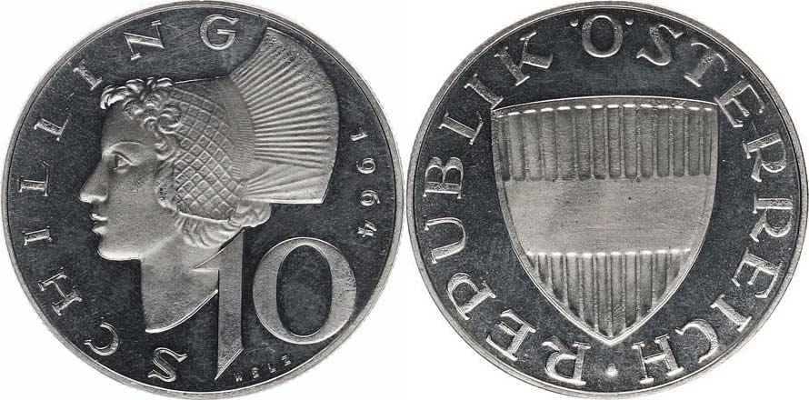 10 Schilling 1964 "R" /raženo 27 000 ks/ kapsle