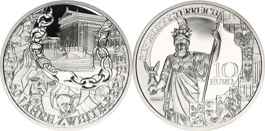10 Euro 2005 - 60. výročí 2. republiky KM 3121 (Ag 925 16 g) kapsle, +orig. etue +certifikát