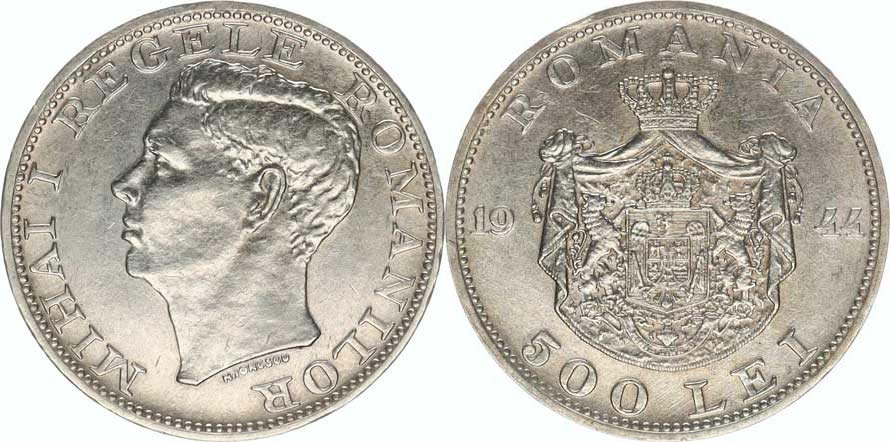 500 Lei 1944 KM 65 Ag 700 12 g
