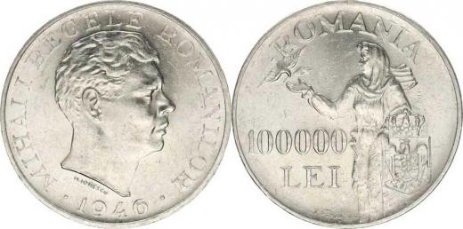 100 000 Lei 1946 KM 71 Ag 700 25,00 g