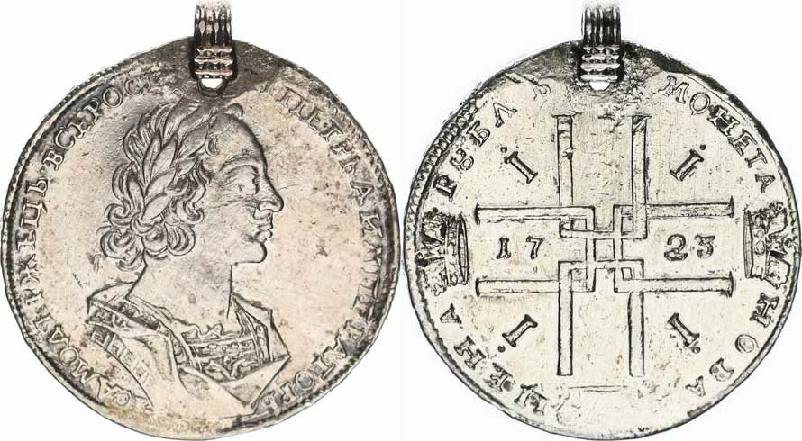 Rubl 1723 b.zn., Moskva Dav. 1657; KM 162,2 _dobové ouško, jinak tém.