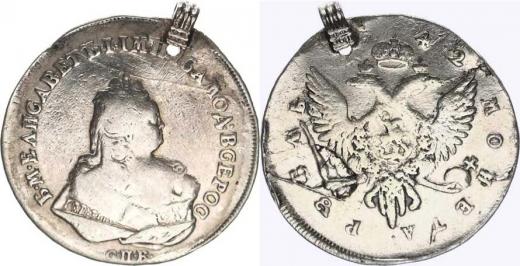 Rubl 1742 SPB, Petersburg Cr. 19b. 3 25,486 g _dobové ouško, hr.