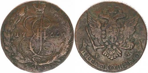 5 Kopějka 1766 EM, Jekatěrinburg Bitkin 612, Diakov 147