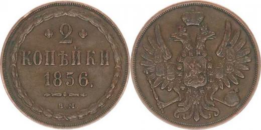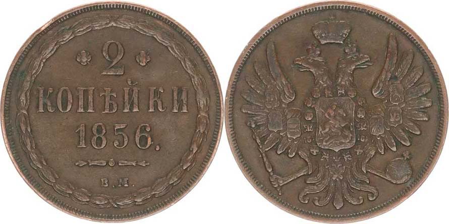 2 Kopějka 1856 BM, Varšava Y. 4,2; Bitkin 464, Plage 486 "R"_tém.