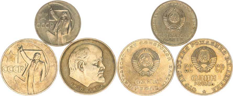 50 Kopějek b.l. (1967) - 50. výr. SSSR, Lenin Y. 139 1 Rubl b.l. (1967) - 50.výr. SSSR, Lenin Y. 140.1 1 Rubl b.l../ 1970) - Lenin Y. 141 3 ks