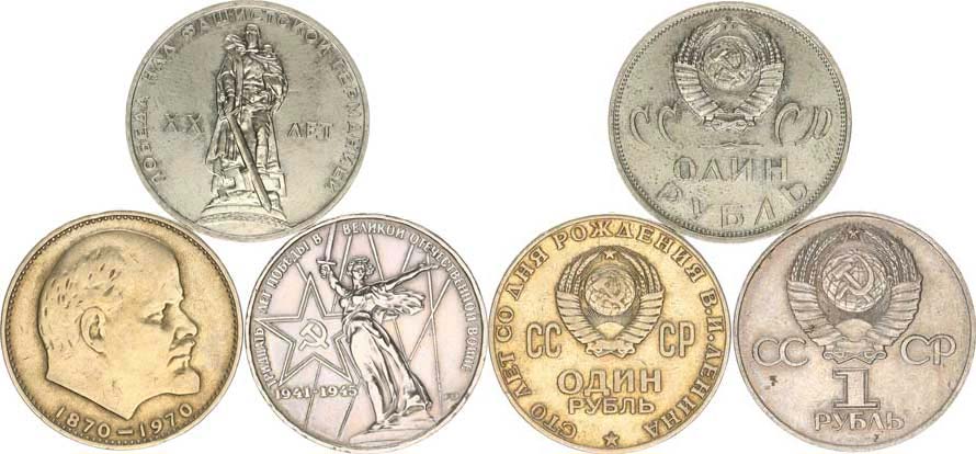 1 Rubl 1965 - 20. výr. porážky fašizmu Y. 135,1 1 Rubl 1975 - 30. výr. porážky fašizmu Y. 142,1 1 Rubl b.l. (1970) - Lenin Y. 141 3 ks