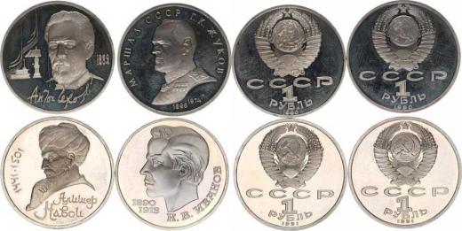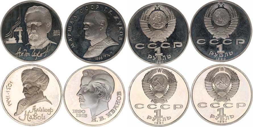 1 Rubl 1990 - Anton Čechov; +maršal Žukov Y. 240, 237 1 Rubl 1991 - Navoj, +Ivanov Y. 260, 282 4 ks