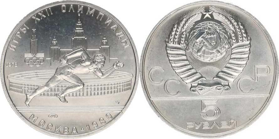 5 Rubl 1978 - OH Moskva, sprintér Y. 154 kapsle Ag 900 16,67 g