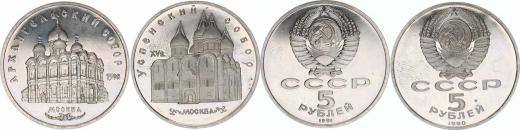 5 Rubl 1990 - Uspenský chrám Y. 246 5 Rubl 1991 - Archangelský chrám Y.271 2 ks