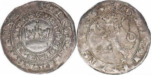 Pražský groš - var.: písmena C a D ve jménu panovníka nedoražená (otevřená) Sm: 2 nález Olešník (Num. sborník XI/1970) "R"