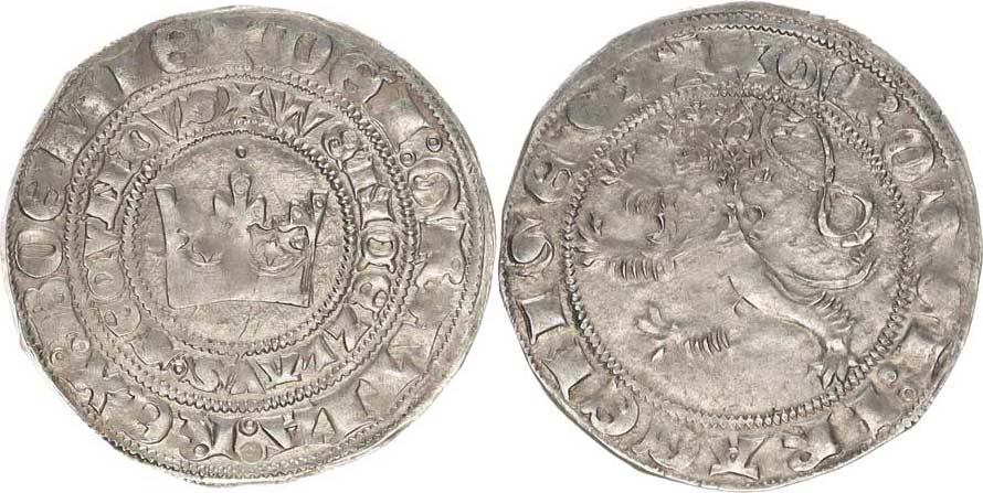 Pražský groš Smol. 2 var.: zn. za hlavou lva 3,65 g