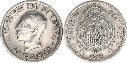 50 Centimos 1926 PC-S KM 741 Ag 835 2,5 g