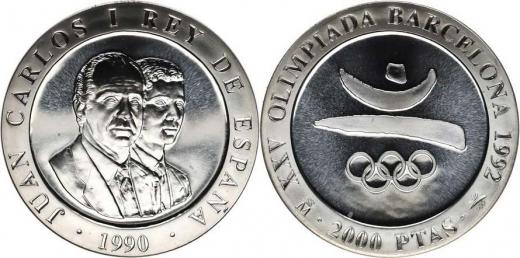 2000 Pesetas 1990 - OH 1992, logo KM 859 Ag 925 26,70 g kapsle