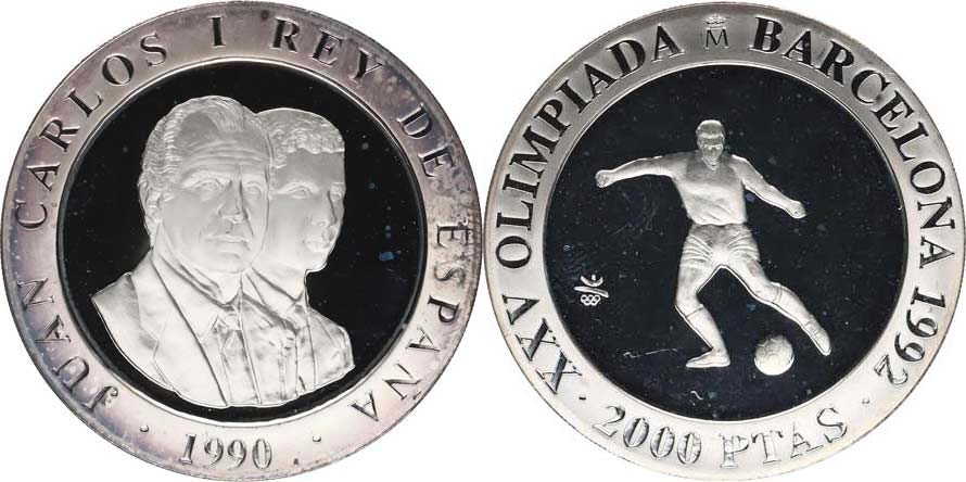 2000 Pesetas 1990 - OH 1992, fotbal KM 862 Ag 925 26,70 g _poškozená kapsle